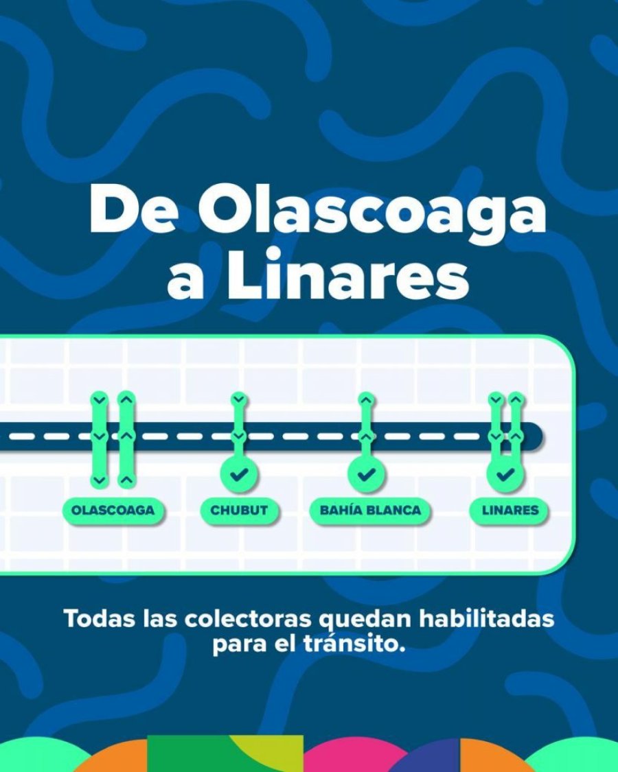 En tanto que, desde Olascoaga a Linares quedarán habilitadas: Olascoaga, Chubut, Bahía Blanca y Linares.