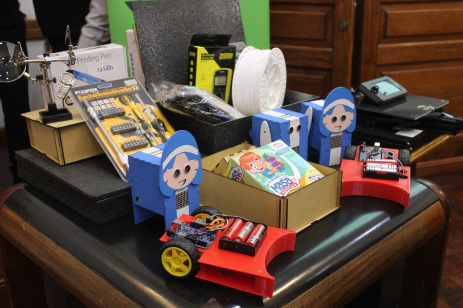 Durante el encuentro, se llevó a cabo la entrega de equipamiento destinado a fortalecer las sedes de robótica en la localidad.