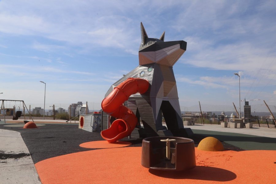 Tras la elección del nombre por parte de vecinos y vecinas, Kuyen fue inaugurado este martes sobre uno de los puntos más reconocidos del Parque Norte. La estructura principal del espacio es un mangrullo con forma de zorro patagónico de más de 5 metros de altura, pensado como un juego integral y como un símbolo de la fauna característica de las bardas neuquinas.