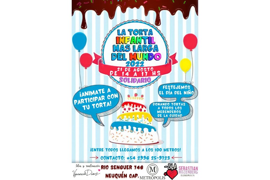 Como en ediciones anteriores, la intención es donar tortas a los merenderos de la ciudad y, entre todas las donaciones, formar la torta más larga del mundo. Para este 2022, la principal consigna es “llegar a los 100 metros” de torta.