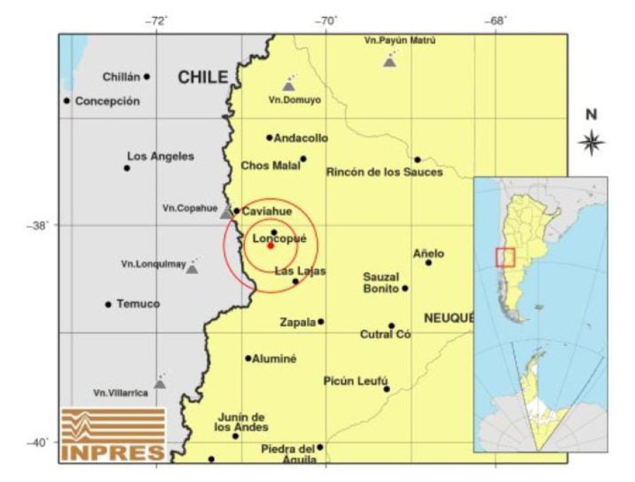 Según el Instituto Nacional de Prevención Sísmica (Inpres) el sismo ocurrió a 589 kilómetros al Oeste de Santa Rosa; y a 14 kilómetros al Suroeste de Loncopué, a la profundidad de 214 kilómetros.
