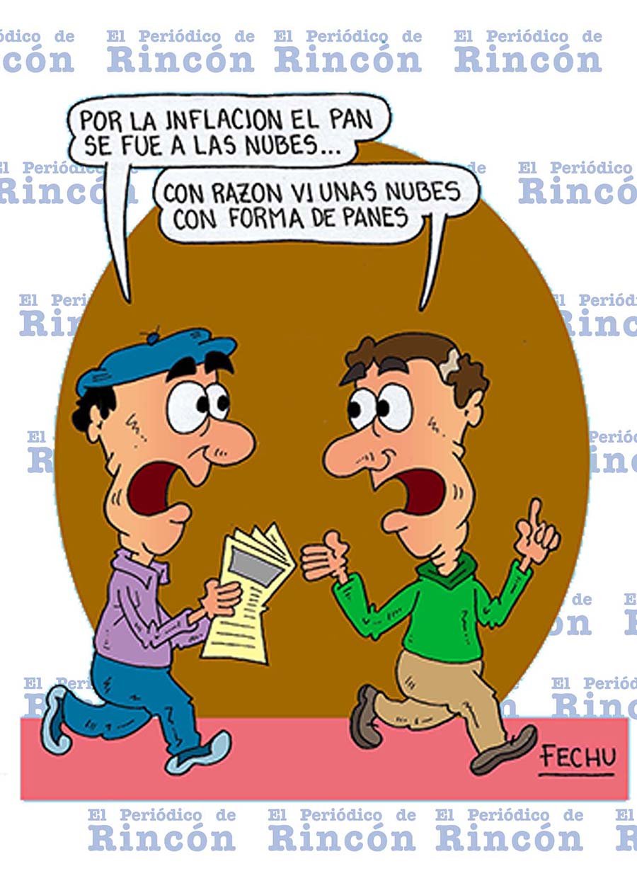 Enviar Imprimir Dibujo realizado por el artista gráfico Fechu, en relación a las noticias ocurridas en los últimos días en la ciudad de Rincón de los Sauces. En esta ocasión, el dibujante hace mención a la escalada inflacionaria en la región.