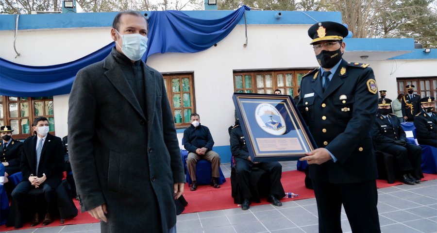 El gobernador Omar Gutiérrez presidió el 10 de julio el acto por el 60 aniversario de la creación de la Escuela de Cadetes de la Policía de Neuquén “Crio. Insp. Adalberto Staub”. Lo hizo acompañado por el vicegobernador Marcos Koopmann y la ministra de Gobierno y Seguridad, Vanina Merlo.